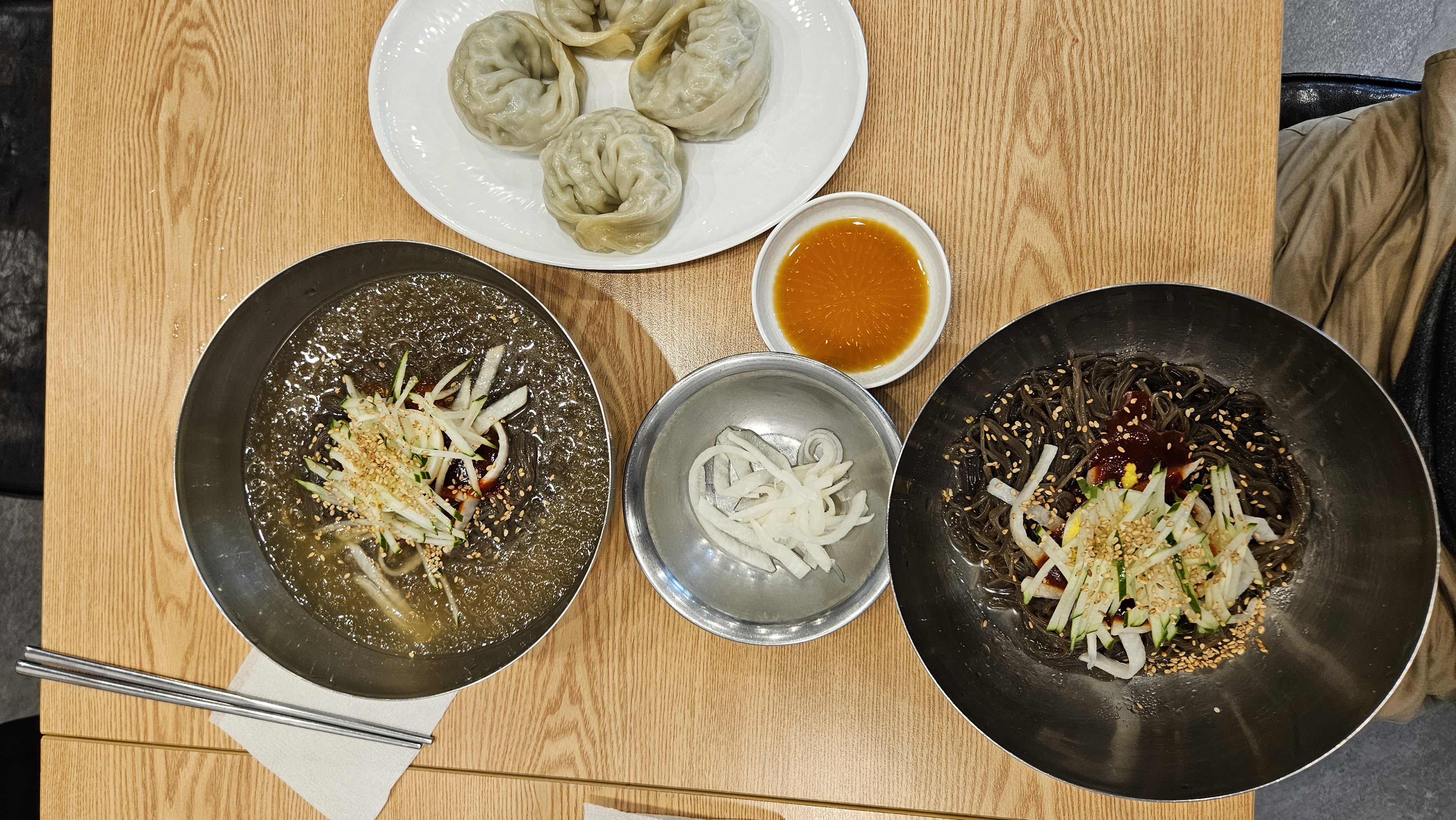 물냉면과 비빔냉면 그리고 만두까지 주문