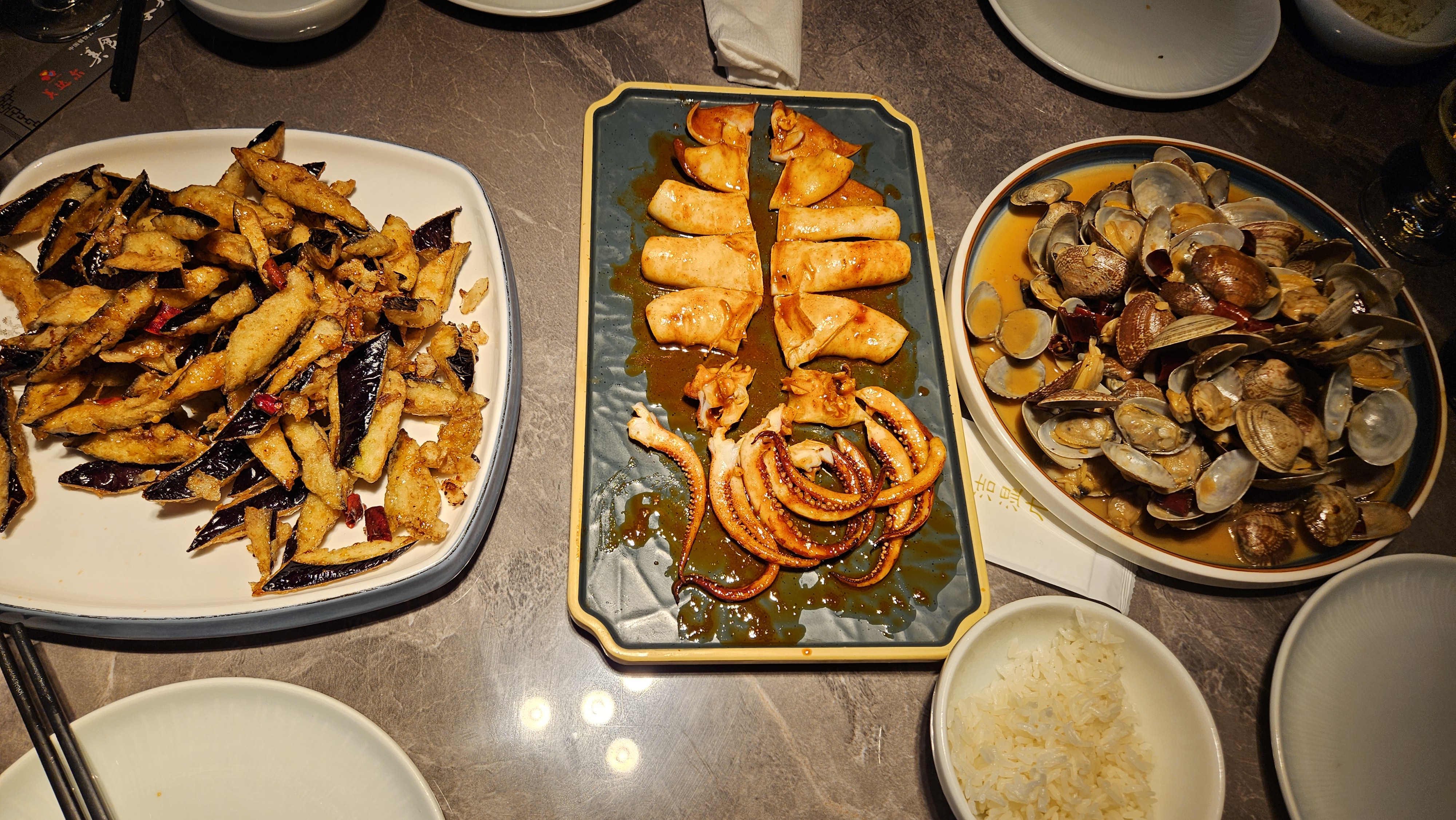 가지볶음과 오징어구이, 조개볶음, 공기밥 2개, 꼬치 몇 개, 볶음밥과 칭다오 맥주도 4병을 주문하니 총 186위안(37200원)이었습니다.