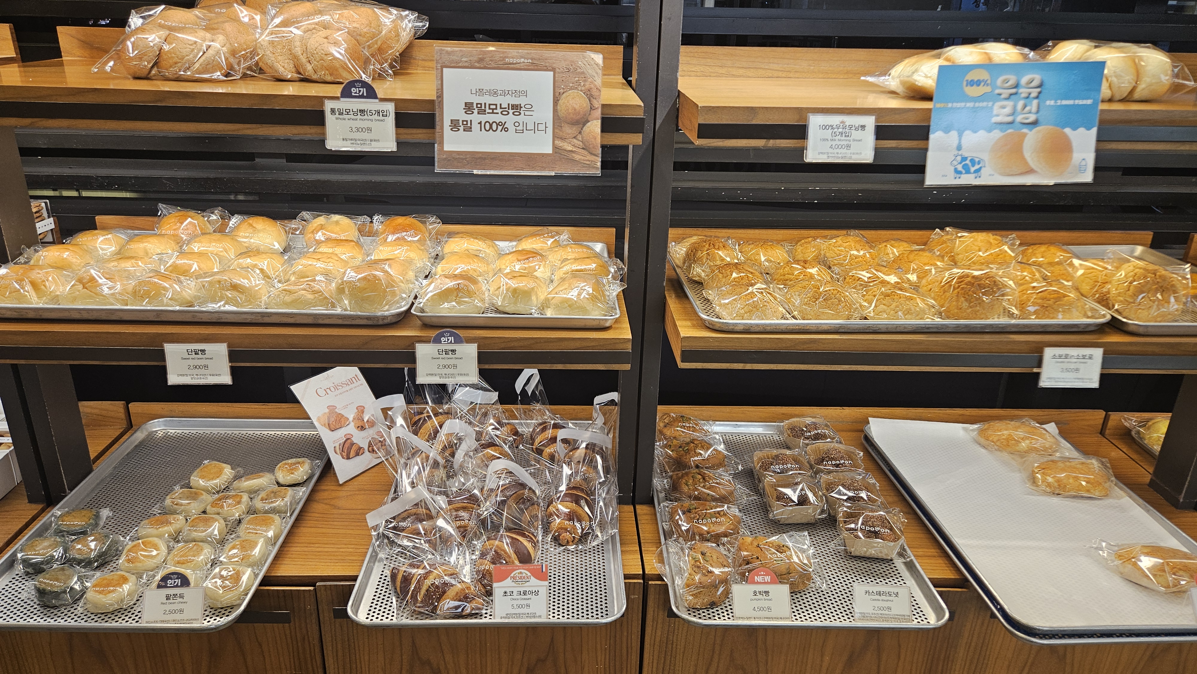 나폴레옹과자점의 빵들이 대부분 자극적이지 않고 기본에 충실한 맛으로 꾸준히 사랑받고 있습니다.