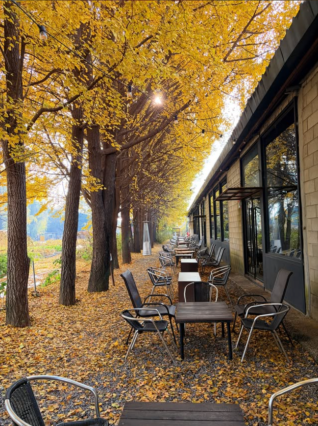 은행잎이 나는 시기인 봄부터 은행잎이 다 떨어진 겨울까지 나름의 매력은 있지만, 아무래도 주변 논이 황금빛으로 물들어가고 은행잎이 노랗게 물들어가는 가을이면 엄청 많이들 찾는 카페라고 합니다.