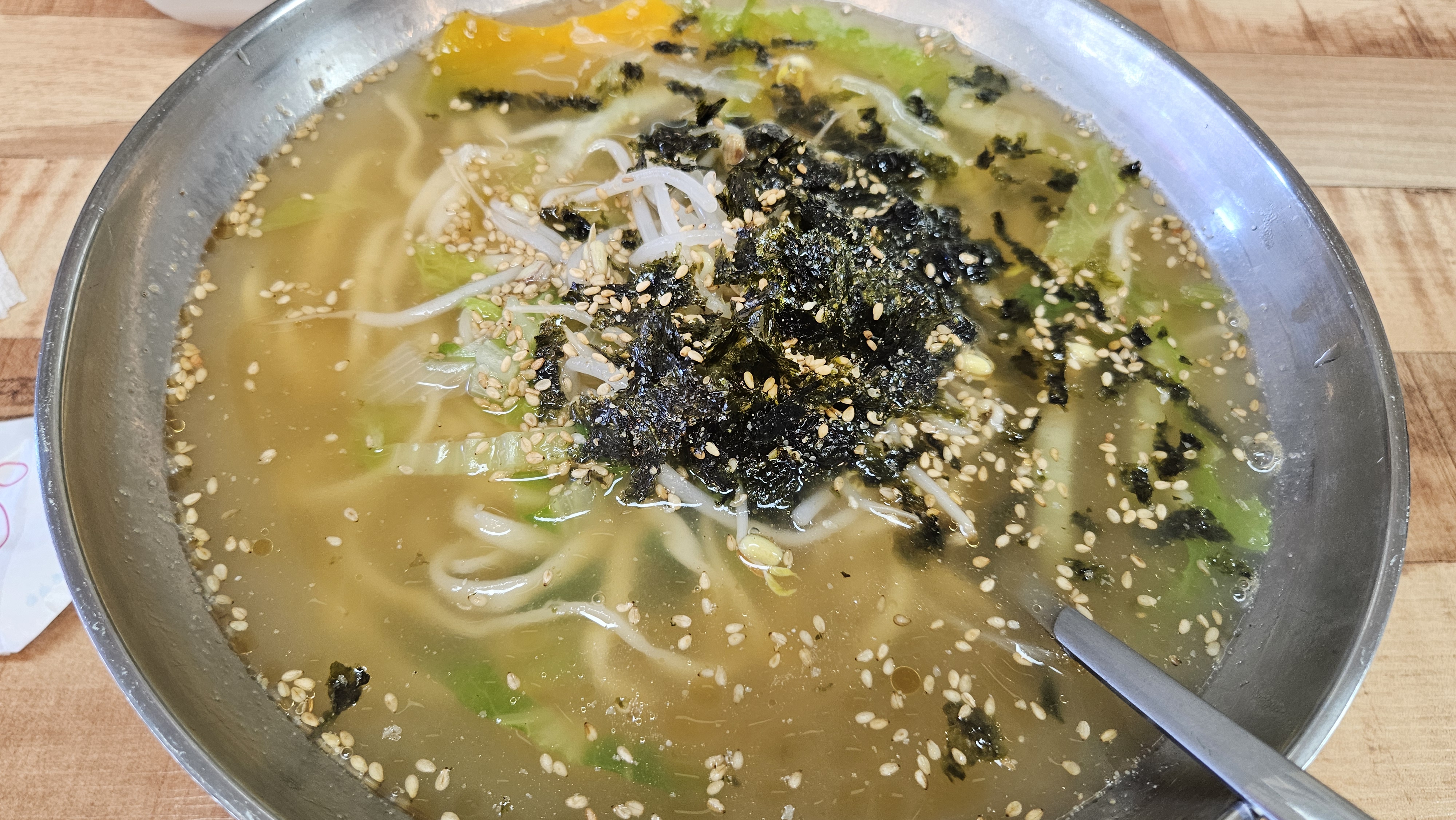 개인적으로 칼국수 육수는 깔끔하고 시원한 맛을 선호하는 편인데, 이 집의 칼국수엔 기름과 김가루 등 갖은양념이 들어가 다소 혼란스러운 맛이더군요.
