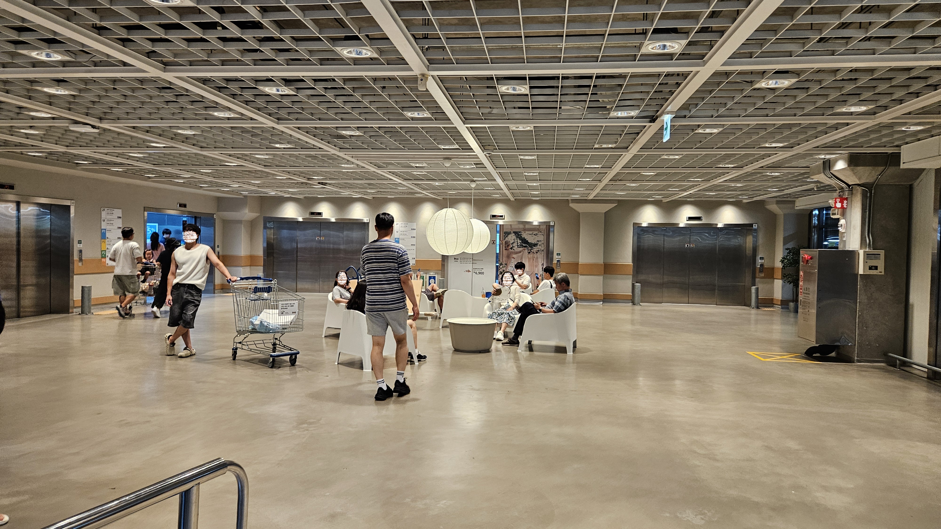 주차장과 연결되는 이케아 지하 3층 로비 공간