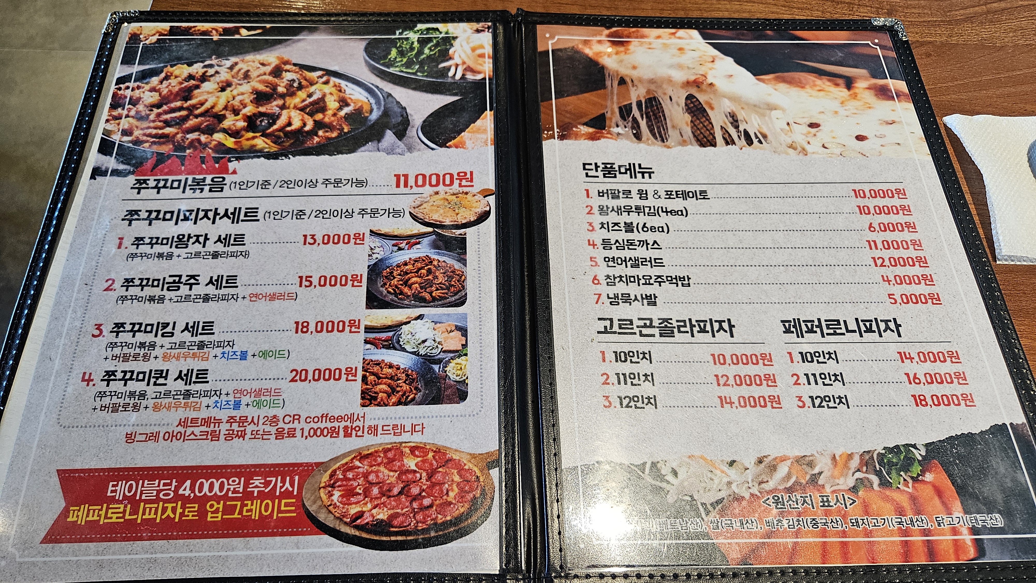 쭈꾸미 왕자세트(쭈꾸미볶음+고르곤졸라 피자) 13,000원
