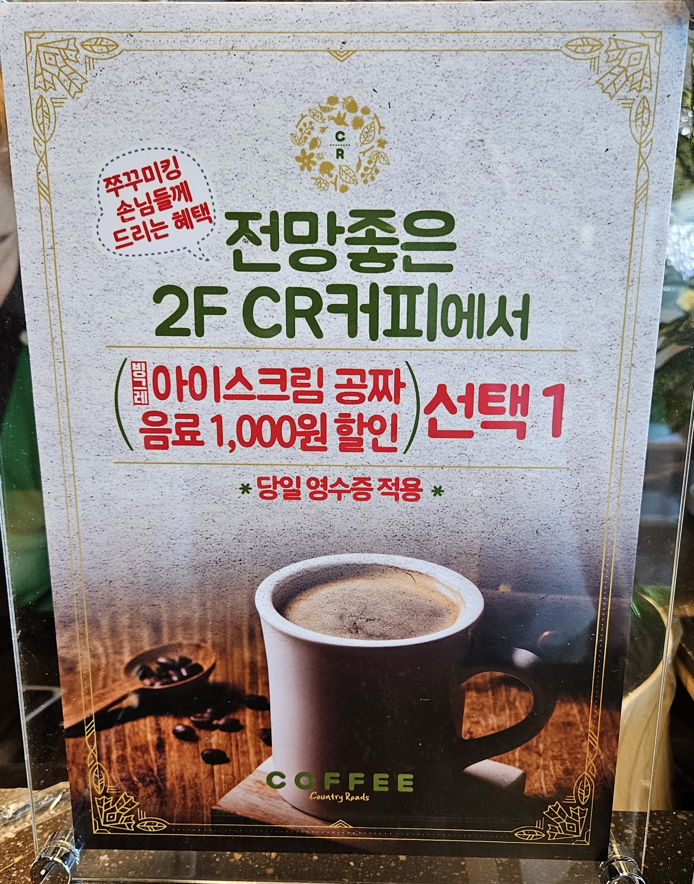 2층에는 CR커피가 있는데요.