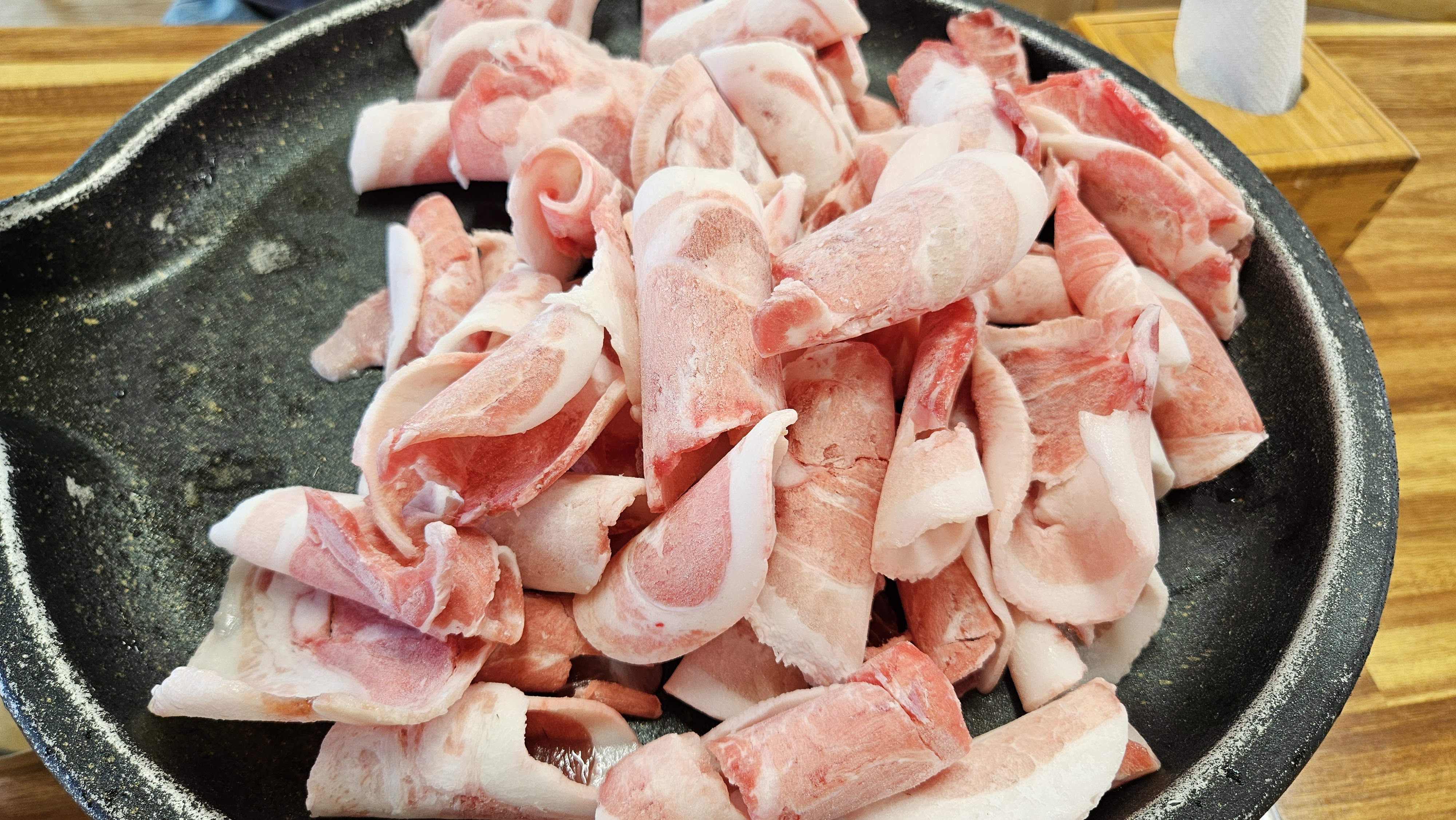 삼겹살 3인분을 주문하니 냉동삼겹살이 나왔습니다.